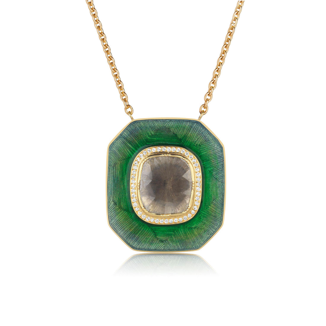 Diamond Slices are sliced diamond sections prized for their unique inclusions and pattern definition with varying hues and colors that are again, completely different from traditional faceted diamonds. Three-rayed 'trapiche' diamond slices are amongst the most scarce and striking of these as they contain a recognizable radiation-symbol pattern.