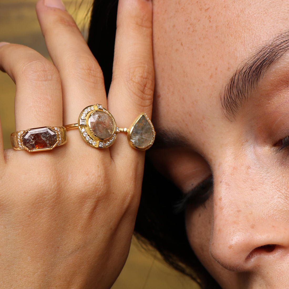 In ancient times the diamond was a symbol of courage, its name from the Greek 'adamas' meaning 'invincible'. Formed by carbon atoms, diamonds are the hardest natural substance found on earth. Diamonds can be highly faceted or kept in their natural 'raw' state for a more artisanal look.