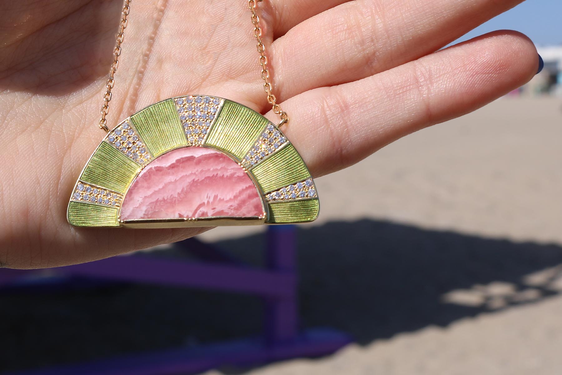 Orbit Rhodochrosite Halo Necklace
