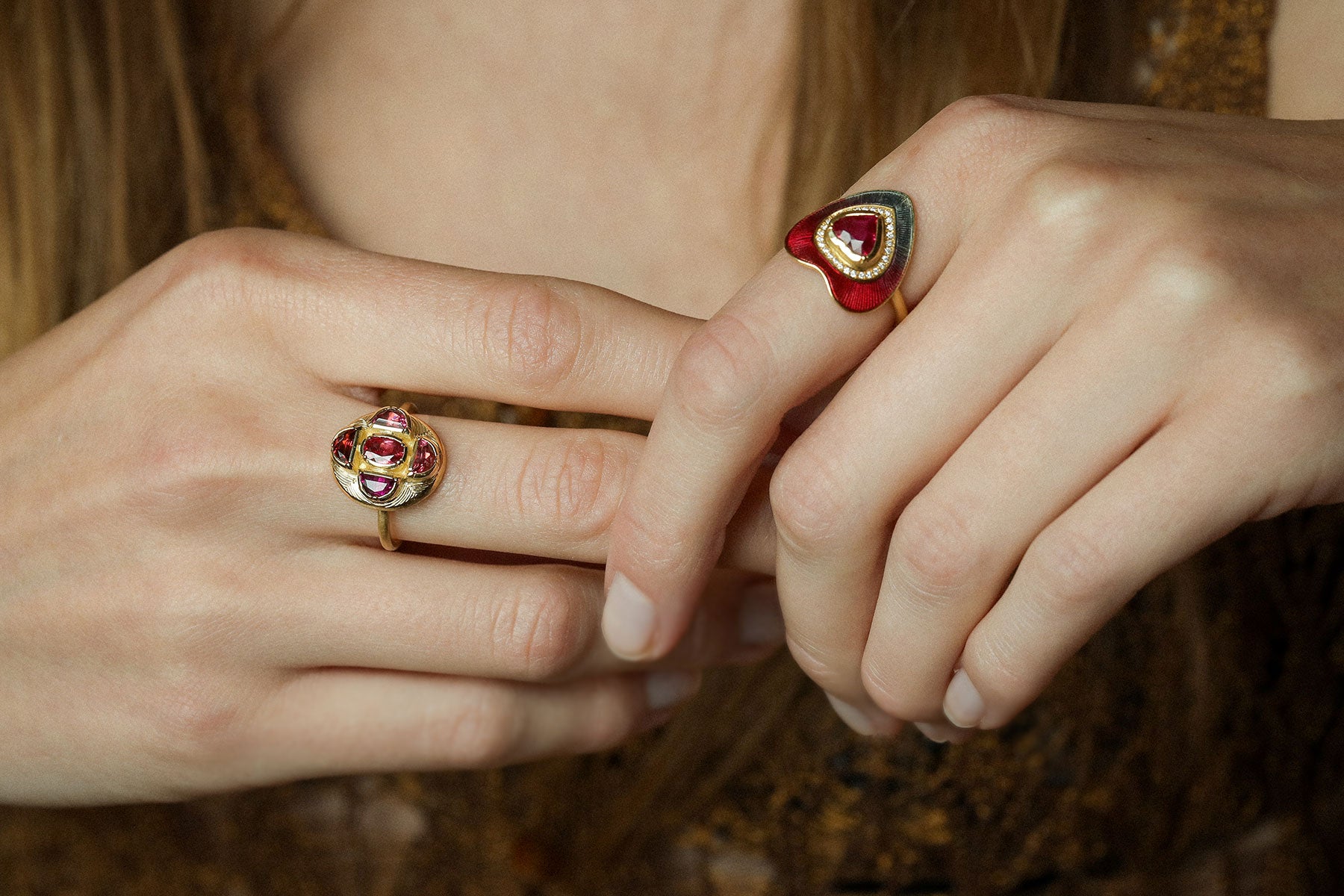 Ruby can really make a statement but can also be very wearable when mixed with other unique gemtones such as Tourmaline, Opal or Spinel."