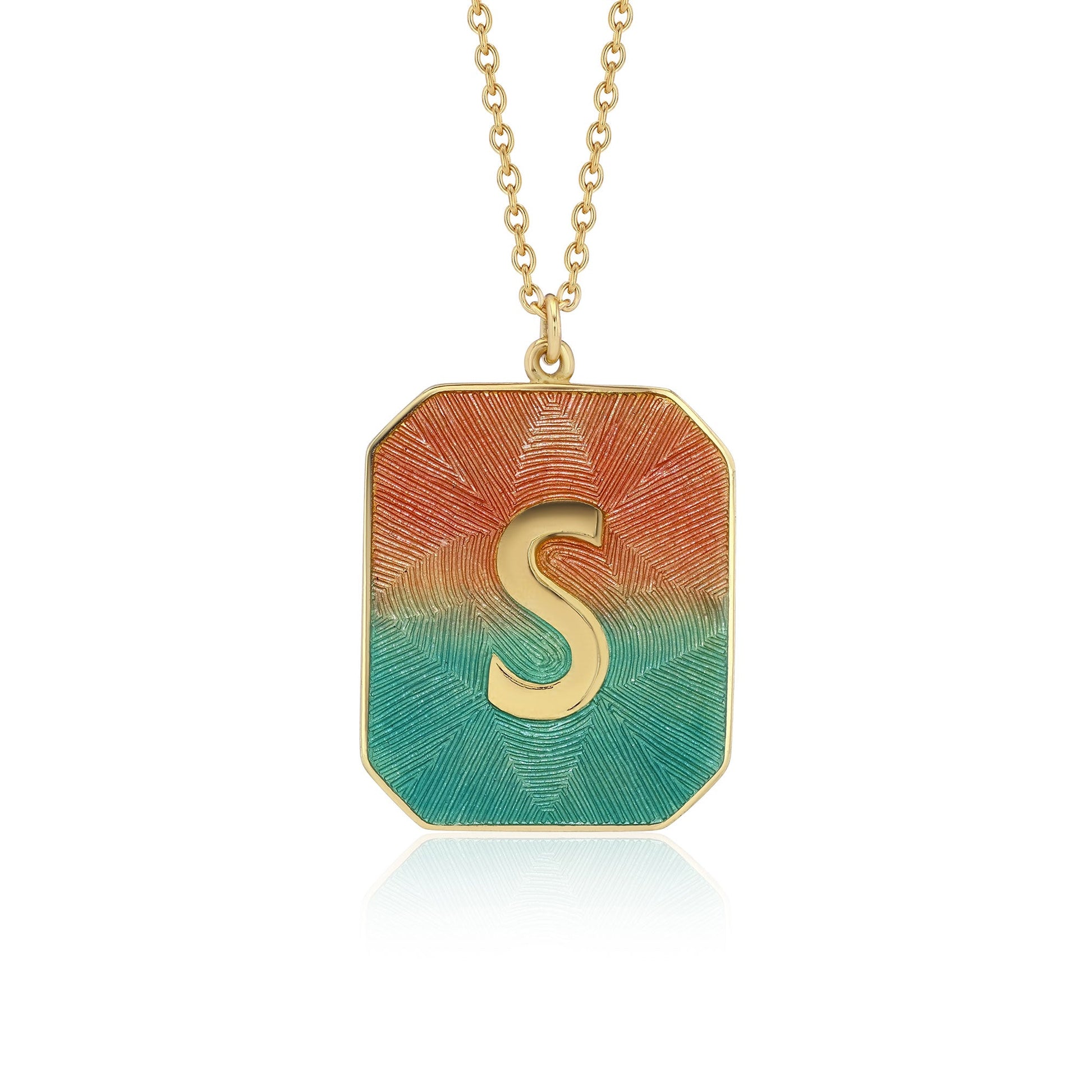 From Brooke's Alphabet Collection intricately engraved and beautifully enamelled necklaces in the vibrant colours of dawn, made to order with your personalised initial.