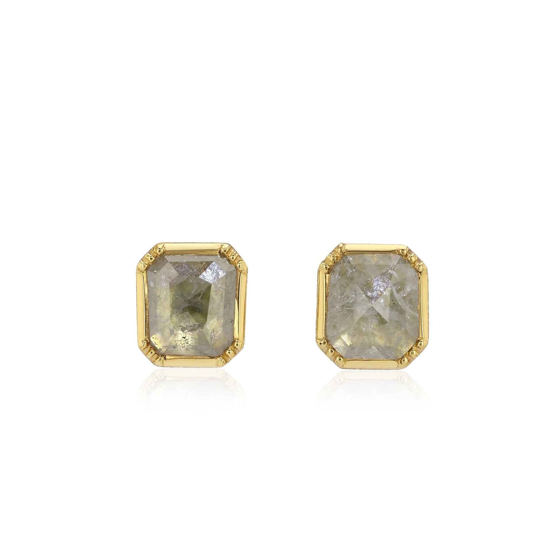 From Brooke's Orbit Collection, one of a kind rose cut Diamond slice earrings bezel set with 18k gold.