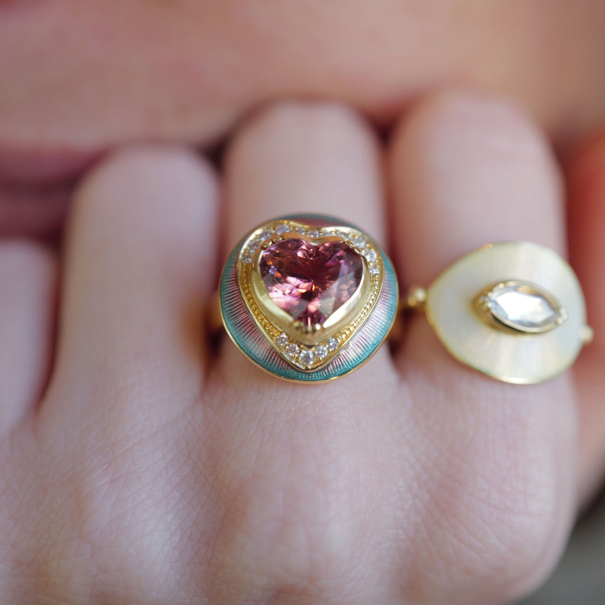 Kaleidoscope Pink Tourmaline Heart Enamel Diamond Ring